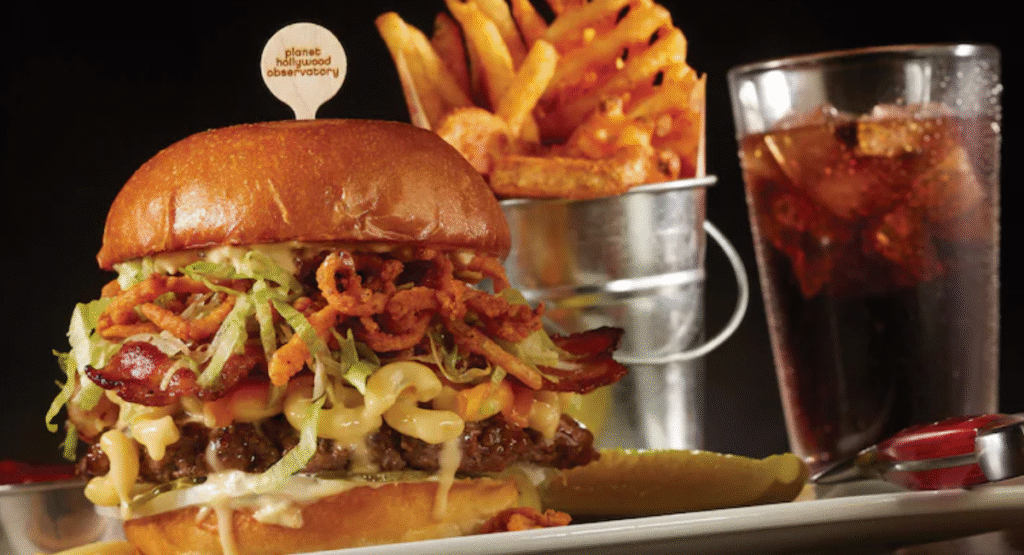 The restaurant is located inside the Planet Hollywood Resort. The room has energy, the burgers arrive with a glossy finish, and specials rotate. Some diners call it the best Burger in town; others say the name sets expectations sky-high. Browse the community here: Reddit – r/burgers discussion.