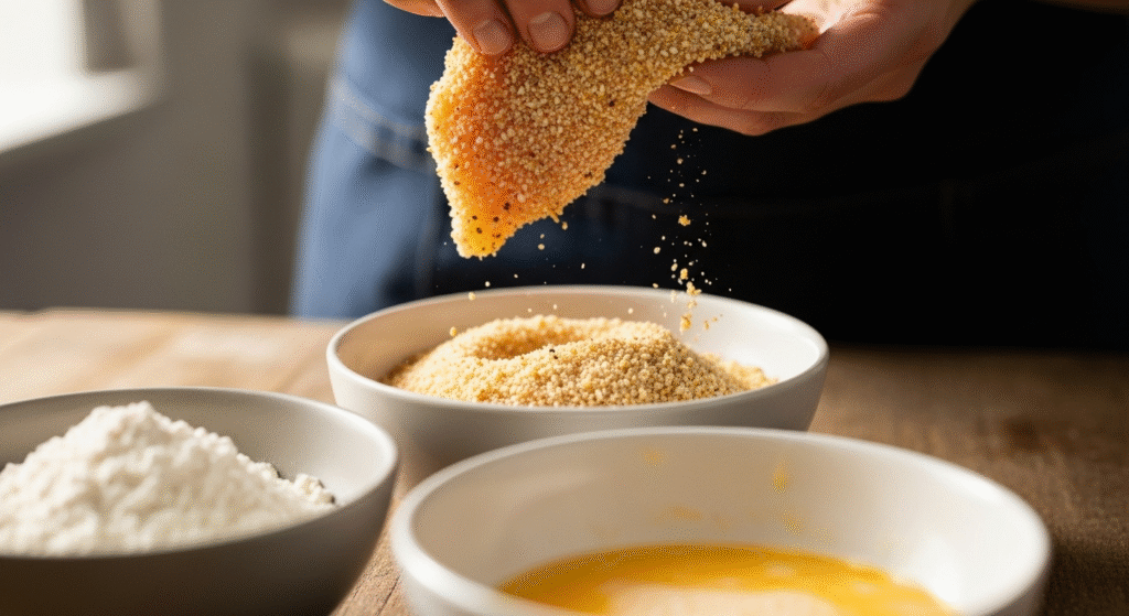 - Skipping the flour step. Without it, the coating slides. Keep the dry-wet-dry order.